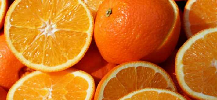 오렌지는 비타민C가 아주 풍부한 과일 중 하나로, 기름기를 함유하고 있는 가죽질 껍질과 즙이 많은 과육으로 이루어져 있습니다.
